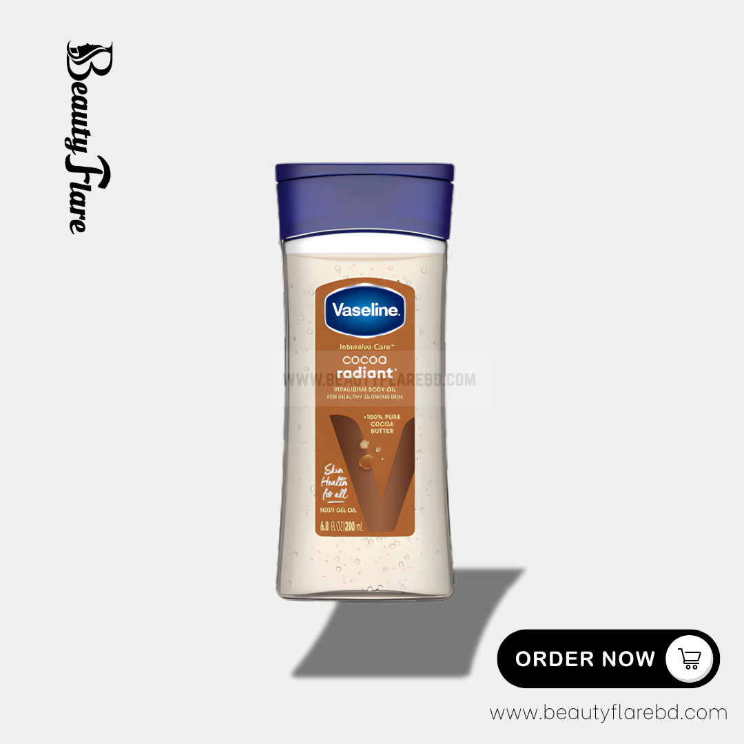 Nourish and hydrate your skin with Vaseline Intensive Care Cocoa Radiant Body Oil, enriched with pure cocoa butter. Achieve glowing, smooth skin with this 200ml bottle, perfect for daily skincare. Available at BeautyFlare!